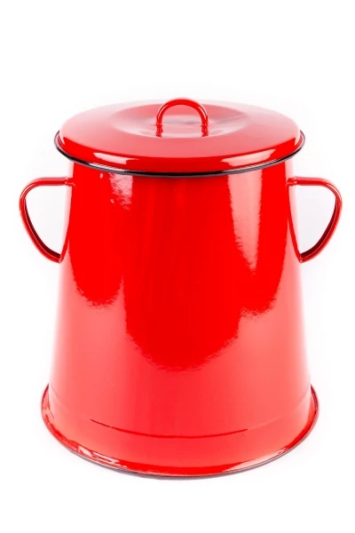 Anyaga: Zománcozott lemez, (kívül piros, belül fekete)