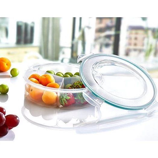 A 20.4 cm x 6.2 cm-es fedeles osztott műanyag tárolódoboz az élelmiszerek összekeveredés nélküli szállítására és tárolására szolgál.