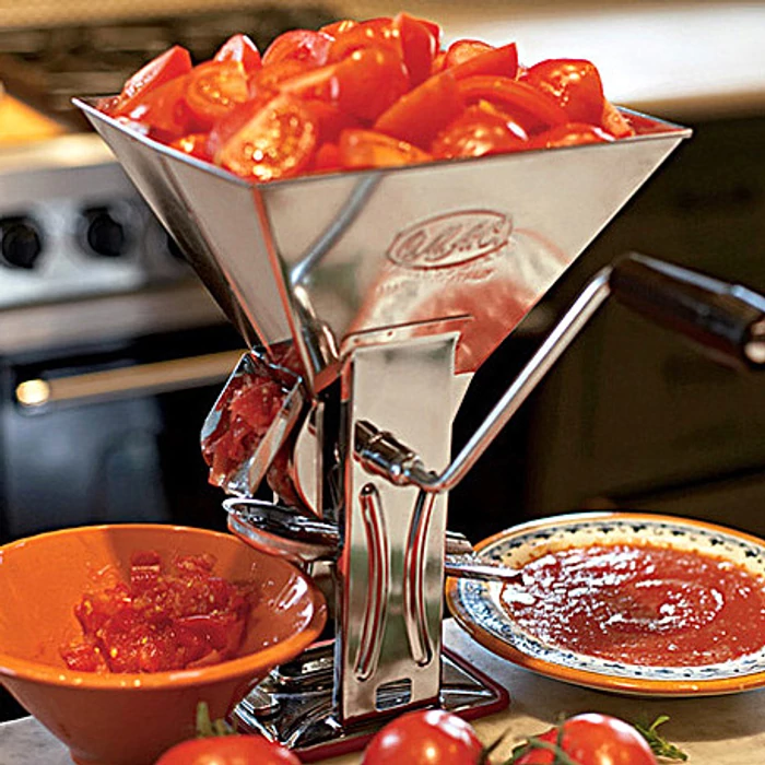 Ez a paradicsom passzírozó a világ bajnok. Kb, 25, éve vásároltam, Olaszországban és a mai napig kifogástalanul működik. Nem kell elő főzni a paradicsomot, négybe kell vágni és mehet a darálóba. Csak a héját szoktuk legalább háromszor átküldeni a passzírozón.