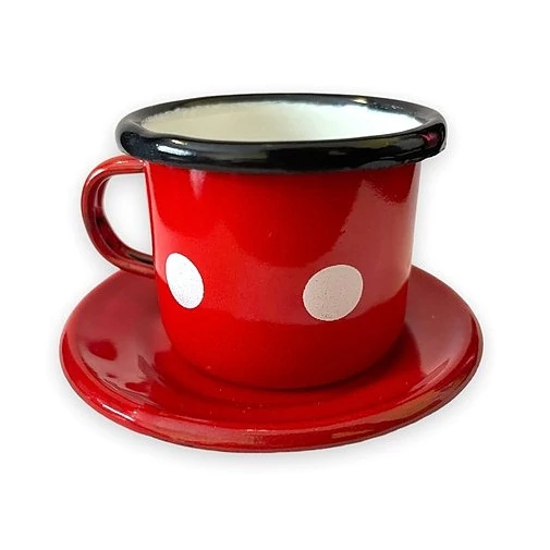 Piros pöttyös Kávés bögre + csésze alj