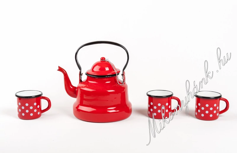 - 3 x piros pöttyös zománcozott bögre