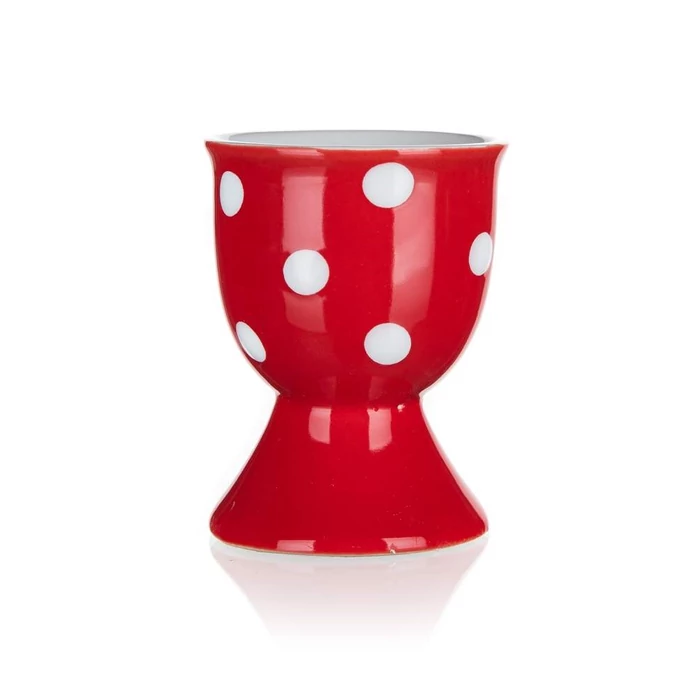 Piros pöttyös tojástartó, anyaga - mázas kerámia, motívumos díszítéssel.