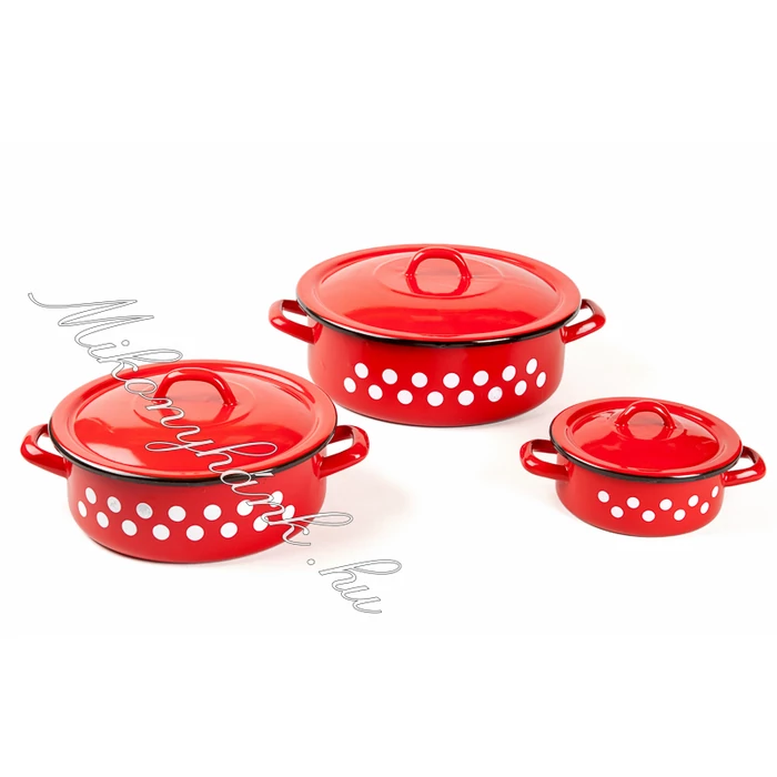 Kívül piros,fehér pöttyös, belül fehér zománcozással
