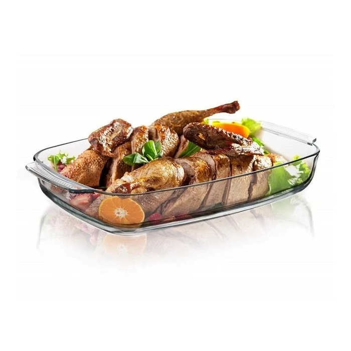 Az 1,5 l-es CASEO szögletes üvegtál sütésre is használható és mechanikus sérülésekkel, valamint hőmérséklettel szemben ellenálló (hőállóság + 220 / - 25 °C).