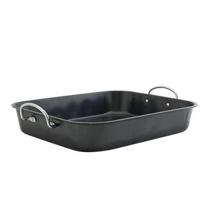 Tapadásmentes felületű pecsenyesütő 36 x 28 cm, mélysége 6 cm, fém fülek, szénacél, anyagvastagság 0,5 mm. A XYNFLON tapadásmentes felület PTFE (politetrafluoretilén) bázisú, rendkívül ellenálló, első osztályú antiadhéziós tulajdonságokkal rendelkezik és könnyen karbantartható.
