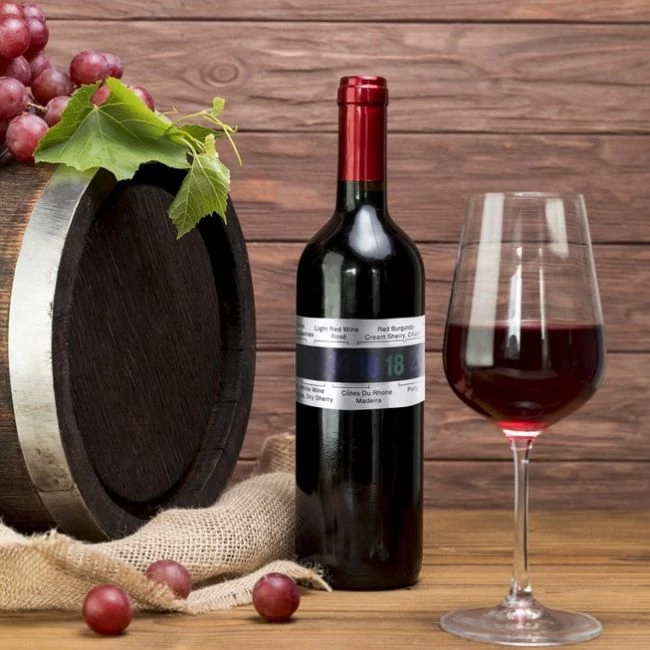 A borgallér-hőmérőt a palackra rögzíti, hogy megnézze, elérte-e a megfelelő hőmérsékletet a bor. A hőmérséklet azonnal és pontosan világít a nyakörvön.
