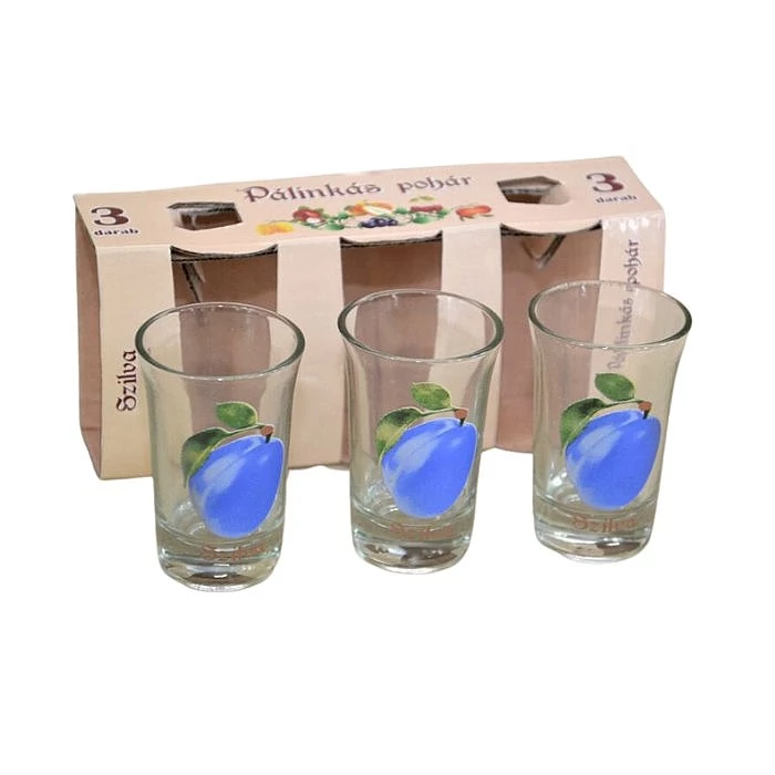 A szilvamintás feles pohárkészlet 3 darabos kivitelben kapható, mindegyik pohár mérete 4cl.