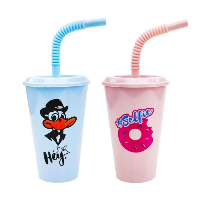 Szívószálas pohár, tetővel 450 ml