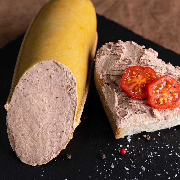 Összetevők: sertésmáj, bőr nyesedék, fűszerek műbélbe töltve