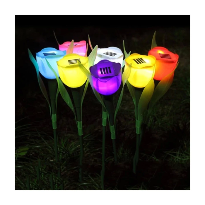 Szolár lámpa - műanyag tulipán designban, a takarékos és kényelmes megoldás a kert megvilágításához.