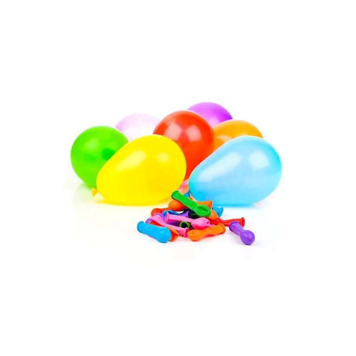Latex lufi készlet partikra és ünneplésekre. A készlet 100 db minőségi és egészségre ártalmatlan élénk színű lufit tartalmaz. A lufik mérete kb. 23 cm és súlyuk 1,2 g. Felfújásához javasoljuk a kínálatunkban szereplő pumpa használatát.