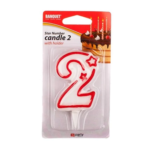 Születésnapi gyertya " 2 ", a műanyag beszúrható gyertyatartó a gyertya tartozéka. Méretek: 7 x 4,5 cm A termék kerti partikon, piknikezéskor, stb. használható.