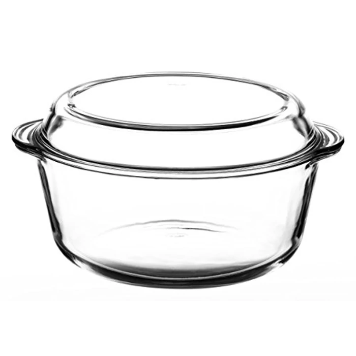 Kerek üveg pecsenyesütő fedővel 3,15 l, mechanikus és hőhatásokkal szemben rendkívül ellenálló kemény boroszilikát üvegből készül, melynek hőmérséklet-tartománya -40 és +300 C között van.