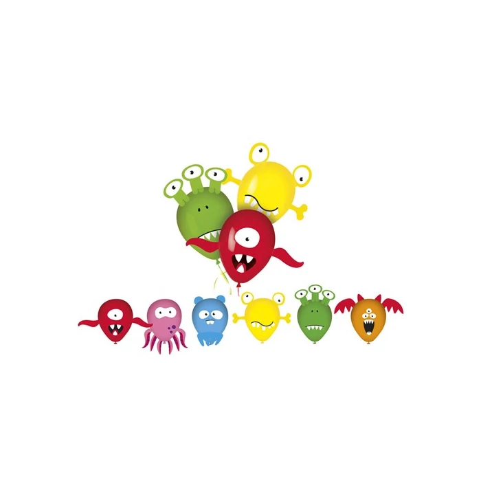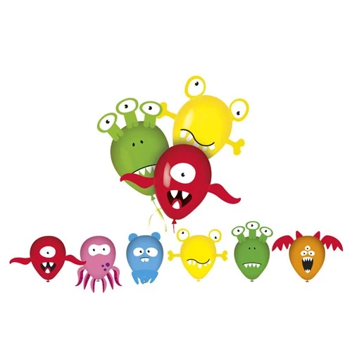 MY PARTY Monsters latex lufi készlet partikra és ünneplésekre. A készlet 6 db minőségi és egészségre ártalmatlan élénk színű lufit és 6 db képet tartalmaz, melyek segítségével szörnyfigurákat készíthet. A készlet olyan öntapadó címkéket is tartalmaz, melyekkel a kivágások a felfújt lufikra erősíthetők. Felfújásához a választékunkban szereplő pumpa használatát javasoljuk.
