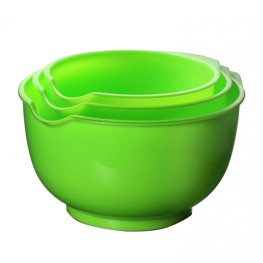 A 17 / 19 / 22 cm átmérőjű és 12,5 cm magas keverőtál készlet mindenféle ételek készítése során kihasználható.