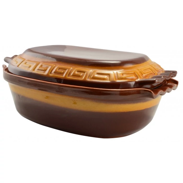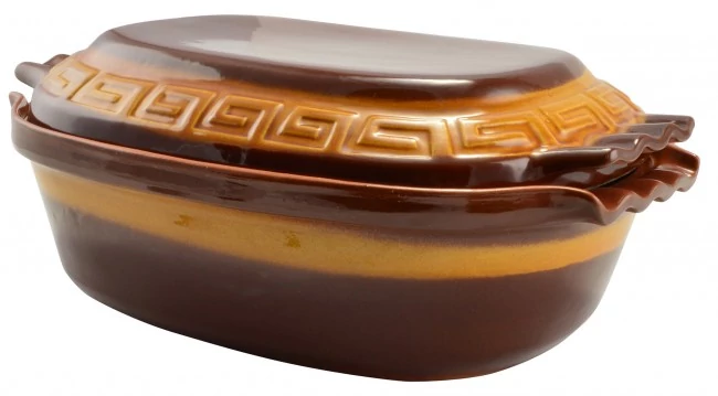 Használata: az edényt első alkalommal 30 percig, további sütések alkalmával 15-60 percig hideg vízben áztassa. Az edényt mindig hideg sütőbe, rácsra tegye, és fokozatosan melegítse a kívánt sütési hőmérsékletre. A forró edényt ne hűtse hirtelen, fa deszkára, hőálló alátétre vagy száraz ruhára helyezze!