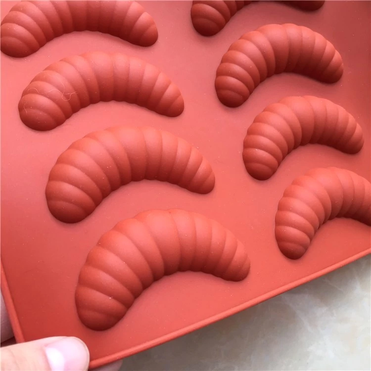 Barna színű 12 darabos szilikon kifliforma, a forma mérete: 27.1 cm x 15.9 cm x 1.2 cm (1 db hókifli 7x2.4cm)
