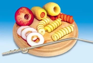 így a burgonyát, paradicsomot, uborkát, spirál alakba át tudjuk vágni.
