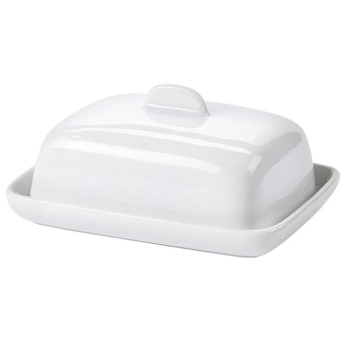 A fehér vajtartó porcelánból készül.