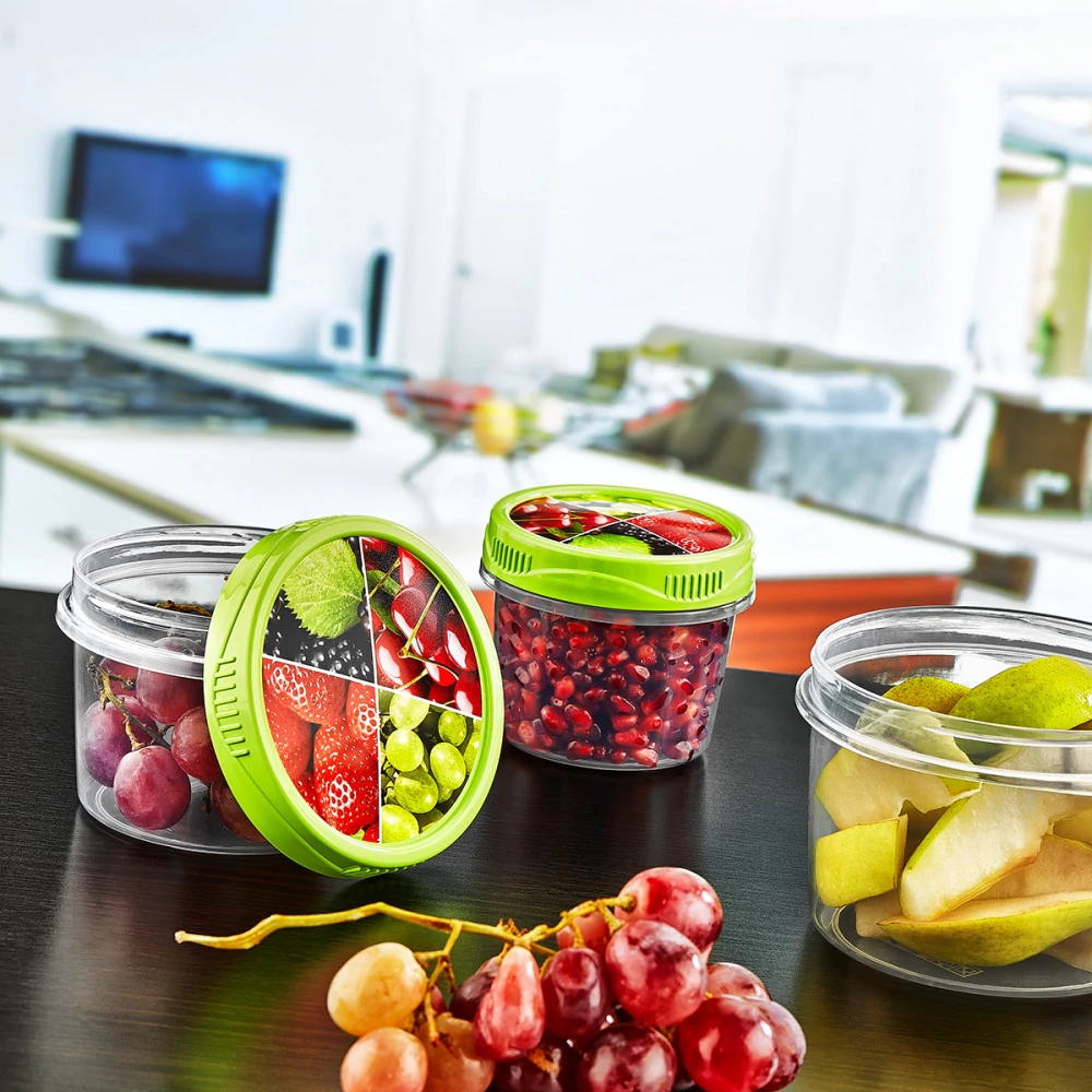 Készlet tartalma 3 darab tárolóedény + 3 darab menetes fedő a tárolóhoz
