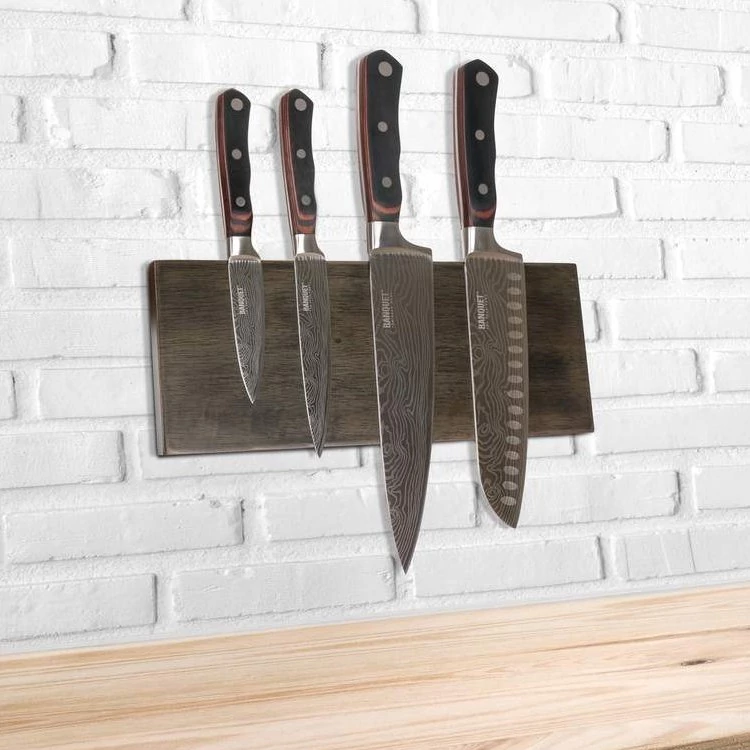 A 30 x 12 cm-es RUBBERWOOD mágneses késlap praktikus segítőtárs minden konyhában a kések áttekinthető elrendezéséhez.