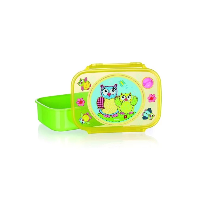 OWLS Green uzsonnás doboz 17,5 x 12 x 6 cm, bagoly motívummal díszített műanyag doboz. Az egészséges iskolai vagy kirándulás alkalmával történő uzsonnázást szolgálja.