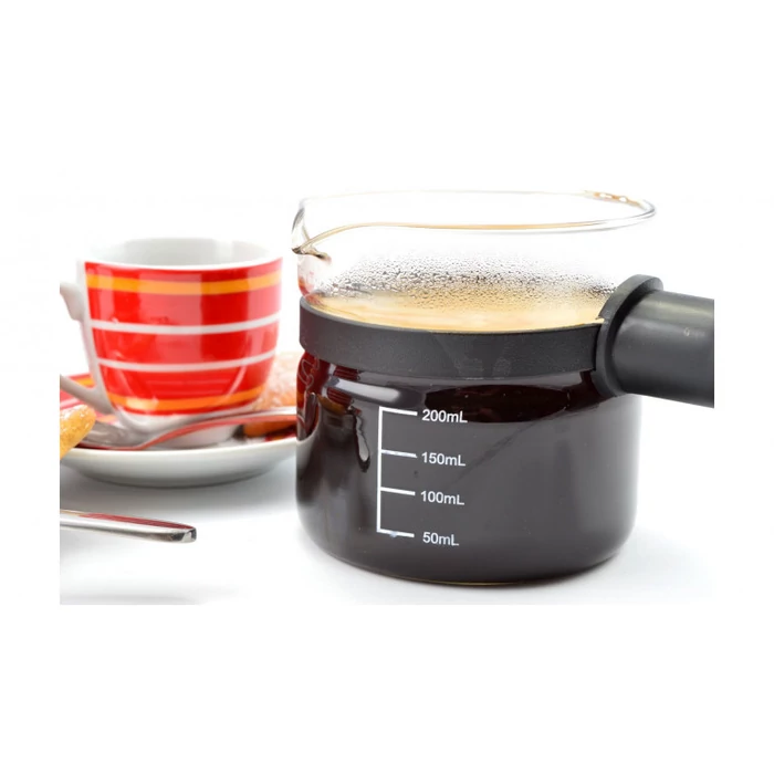 Mérete: 8 cm magas; 19 cm hosszú a nyelével együtt; 8,5 cm átmérőjű