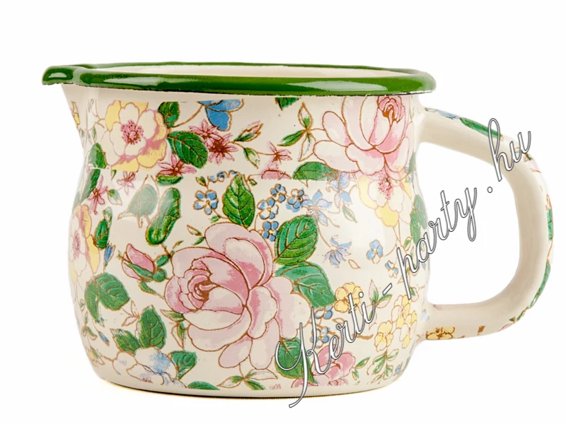 Anyaga: kívül virág mintás belül fehér zománcozott lemez.